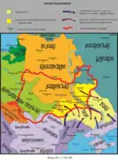 На західноєвропейських географічних мапах зе́млі колишніх північно-східних князівств послідовно позначалися як Moscovia. Натомість терени колишніх Чернігівського, Київського і Галицько-Волинського князівств, ототожнювані з первісною, материнською Руссю, завжди позначені як Russia чи Ruthenia (з XVI ст. — також Roxolania)[2].