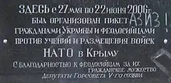 На згадку про ці події на стіні алеї біля порту Феодосії, в тому місці, де стояло наметове містечко, 22 червня 2007 року за рішенням місцевої Міськради була урочисто відкрита пам'ятна меморіальна табличка.