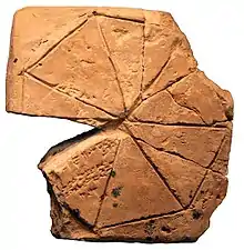 ![]() Еламітська глиняна табличка з геометричною задачею, 2-ге тисячоліття до н. е. |