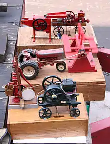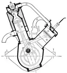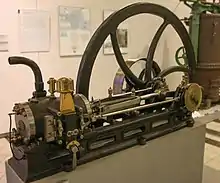 - 1867: Отто і Ланген виставили свій вільний поршневий двигун на Паризькій виставці в 1867 році, і вони виграли найбільшу нагороду. У нього було менше половини споживання газу двигунами Lenoir або Hugon.[14]