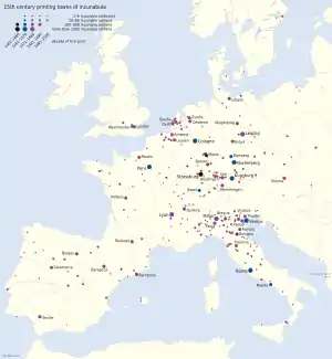 Вже в 1460 р. Ментель мав друкарню в Страсбурзі, Пфістер — в 1461 р. в Бамберзі. Після призначення Майнца герцогом Нассауським, коли друкарня Шеффера і Фуста була знищена, працівники, або, як їх називали, «діти Гутенберга», розбіглися і забравши з собою і друкарське мистецтво. У Кельні Ульріх Целль працював вже в 1466 р.; пізніше були: Базель, з 1471 р.; Аугсбург, де Гюнгер Цайнер працював з 1468 р.; Ульм — з 1469 р.; Нюрнберг — Генр. Кеффер і Іог. Зензеншмідт, з 1470 р. Для північної Німеччини раніше всього була заснована друкарня у Франкфурті-на-Майні, а потім в Любеці, Лейпцигу, Ерфурті та ін. У Відні перша друкарня відкрилася 1482 р., але постійна — лише в 1491. Загалом, до кінця XV ст. в Німеччині було понад 50 друкарень, а друкарів — понад 200. З Німеччини нове мистецтво розповсюдилося в інші країни.