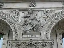 ![]() Скульптурне уособлення Науки на фасаді Форин-офіс в лондонському Вайтхолі |