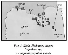 У 1970 р. щорічний обсяг видобутку нафти перевищував 160 млн т, але з середини 1970 р., після введення урядових обмежень, він став скорочуватися. Частково обмеження були введені для того, щоб примусити нафтові компанії прийняти вимоги уряду, частково — щоб не допустити виснаження нафтових ресурсів країни, поки її економіка не досягла бажаного рівня розвитку. Серед країн-експортерів нафти Лівія найбільш послідовно проводила курс на посилення контролю держави над нафтовою промисловістю. Внаслідок угод з одними нафтовими компаніями і націоналізації інших уряд Лівії встановив контроль над шістьма нафтовими компаніями, що діють в країні. У вересні 1973 р. під контролем держави виявилися і всі інші компанії, пов'язані із видобутком і переробкою нафти. У 1973—1974 рр. (роках т. зв. «нафтової кризи») Лівія нарівні з іншими членами ОПЕК в чотири рази підвищила продажну вартість нафти. У 1972—1978 рр. щорічний обсяг виробництва нафти досягав 96 млн т. До 1985 р. рівень видобутку у зв'язку з коливанням світових цін зменшився до 51 млн т на рік, але в подальші 10 років її виробництво знову зросло. Хоч на 1994—1995 рр. квота, встановлена ОПЕК для Лівії, становила 69 млн т на рік, фактичний обсяг видобутку досягав 75 млн т. Головні родовища нафти зосереджені в нафтогазовій області Сирт та на заході країни.
