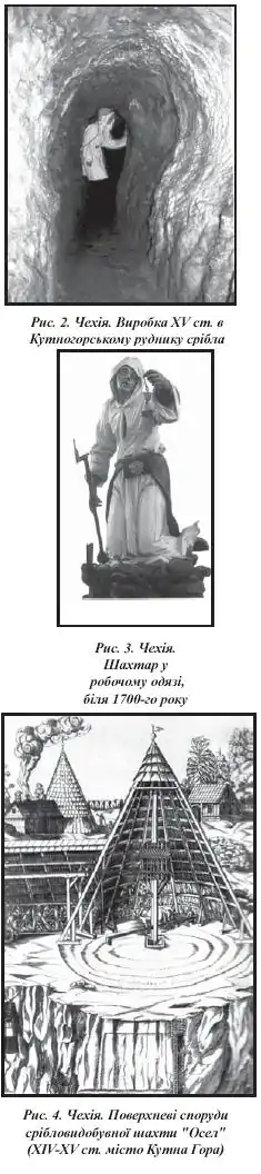 буре вугілля в Чехії почали добувати у 1566 р. в сучасному Північно-Чеському буровугільному басейні. Видобуток кам'яного вугілля почався у 1570 р. у Пльзеньському басейні. Перша кам'яновугільна шахта в районі м. Острава була відкрита в 1776 р. В Чехії почали застосовувати вибухові (порохові) роботи для проведення виробок в 40-х роках XVII ст., динаміт застосовано в 1868 р. (вперше у світі). На шахті «Войтех» (м. Пршибрам) у 1875 р. уперше в гірничій практиці була досягнута глибина розробки 1000 м.