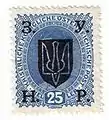 Щоб зупинити наплив з Росії давніх поштових марок і запобігти втраті державного скарбу, 20.08.1918 гетьманське Міністерство Пошти ухвалило передрукувати всі наявні запаси російських марок українським державним гербом. Вперше такі поштові марки з наддруком тризуба появилися в обігу 13.08.1918, а листівки вже 16.07.1918. Наддруки робилися місцевими засобами у 6 поштових округах: Київській, Полтавській, Харківській, Катеринославській, Одеській і Подільській. Тризуб відтискали всілякими способами, нерідко ручним, тому виникло багато відмін його форми, величини й кольору. Досліди виявили 52 основні типи тризубів, 68 варіантів і 13 хибодруків, разом 133 головні відміни. Українізації підлягли різні поштові марки царської Росії, а в Жмеринці 08.08.1919 додано тризуб і на поштових марках, виданих урядом О. Керенського 1917. Всі українські поштові марки були в Україні в обігу ще деякий час після залишення її Директорією УНР. Найпізніша стверджена дата — 05.07.1921 (Катеринослав).