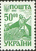 Марки першого стандартного випуску поштових марок випускались у 1992 році. В обіг були введені марки номіналами 0.50 укр.крб, 0.70 укр.крб, 1 укр.крб, 2 укр.крб, 5 укр.крб, 10 укр.крб, 20 укр.крб, 50 укр.крб.