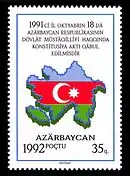 26 березня 1992 в обіг надійшла поштова марка «Проголошення незалежності», яка розглядається каталогами як перша марка незалежної Азербайджанської Республіки.[8]