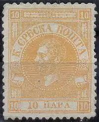 З 1869 по 1880 рік випускалися марки з портретом князя Мілана Обреновича. На марках цих випусків не вказано назви держави.
