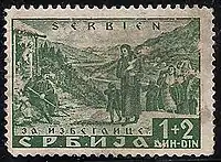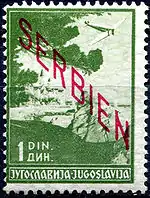 Під час Другої світової війни з 1941 по 1944 рік Сербія знаходилася під німецькою військовою адміністрацією. Перші марки окупованої Сербії надійшли в обіг в червні 1941 року. Вони мали горизонтальну надпечатку з текстом нім. «Serbien» на марках Югославії 1939 року з портретом короля Петра ІІ Карагеоргієвича.