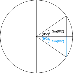 Ця ж нерівність міститься в «Обчисленні піщинок» Архімеда[11]. В працях Архімеда (III століття до н. е.) наводиться важлива теорема ділення хорд, яка по суті еквівалентна формулі синуса половинного кута[12][13]: