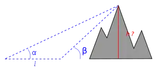 Окрім артилерії і навігації, тригонометрія розвивалась швидкими темпами і в таких класичних сферах її застосування, як геодезія. Широке застосування тангенсів пояснювалось, зокрема, простотою вимірювання за їх допомогою висоти гори чи будівлі (див. малюнок):