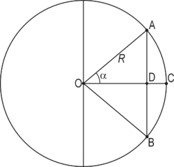 При цьому радіус кола не вважався рівним одиниці, як тепер. Припускають, наприклад, що у Гіппарха радіус кола вважався рівним R=3438 одиниць — за такого визначення довжина дуги кола була рівною кутовій мірі цієї дуги, вираженої в мінутах: , і це полегшувало обчислення. У Птолемея R=60 одиниць. Згідно з сучасними реконструкціями[14] [17], величини хорд у Гіппарха були протабульовані з інтервалом 7°30'. Можливо, в основі обчислення таблиці Гіппарха лежав метод, що був розроблений Архімедом і брав початок ще у Аристарха[18].