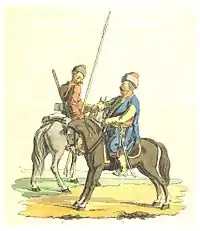 Своєрідне народне ополчення створили також орди, що були під владою київських князів. Вони мали загальну назву чорних клобуків та складались з недобитків різних степових орд, головно печенігів та торків, що або самі піддалися під українську владу, або були завойовані та осаджені на степовому пограниччі як бранці. В українському війську вони складали рухливий елемент, відважний і завзятий, що сліпо йшов на всіляку небезпеку, коли тільки можна було сподіватися наживи і здобичі[2].