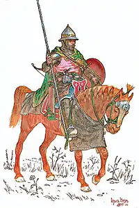 Грек Маврикій розповідає, що слов'яни мали по два списи, луки з отруєними стрілами й важкі щити, а до бою йшли невпорядкованою громадою. Проте пізніше, за прикладом краще зорганізованих сусідів, слов'янські племена прийняли кращий устрій[2].