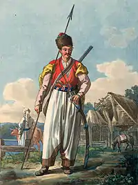 У війнах другої половини XVIII століття на боці Росії проти Османської імперії воювало багато греків, болгар, молдован та представників інших балканських народів. З греків і албанців створюються військові формування. Під час війни 1768–1774 років на боці російської імператорської армії воювало багато загонів болгар. Так, болгарин Н. А. Каразін доставив російському командуванню цінні розвіддані і привів із собою трьохтисячний загін добровольців з болгар, румунів і молдован. Деякі з подібних загонів пізніше були включені в Бузьке козацьке військо.