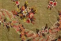 Бавовняна панель, вишита шовком, бавовною і позолоченою металевою ниткою, сплетена машиною у Шотландії бл. 1887 р. Мотив тюльпанів навіяний турецьким текстилем.