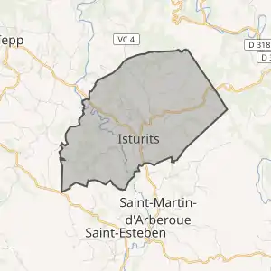 - Розташування муніципалітету Істюритс на мапі Франції та сусідні муніципалітети