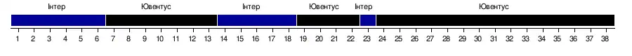 | Ювентус | 2–2 | 2–1 | 2–0 | 2–1 | 2–1 | 2–0 | 4–0 | 2–1 | 4–0 | 1–0 | 4–3 | 2–1 | 1–3 | 2–0 | 2–2 | 2–0 | 4–1 | 3–1 | 3–0 |
