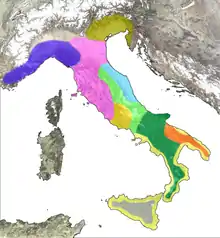 Подальша міграція відбувалась на Апенінський півострів у 2 тисячолітті до н.е. через Альпійські гори з території сучасної південної Баварії.