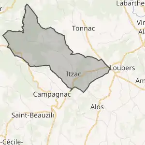 - Розташування муніципалітету Ітзак на мапі Франції та сусідні муніципалітети