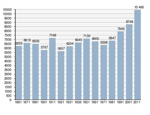 Станом на 31 грудня 2014 року в муніципалітеті офіційно проживали 754 іноземці з 45 країн, серед них 523 громадяни країн Євросоюзу та 34 громадяни України.[4]