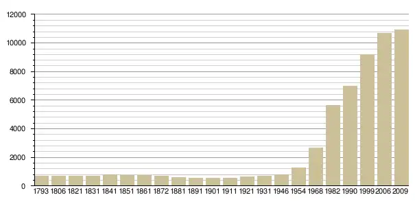 Динаміка населення (base Cassini de l'EHESS pour les nombres retenus jusqu'en 1962[4], base Insee à partir de 1968 (population sans doubles comptes puis population municipale à partir de 2006)[5] · [6] ):