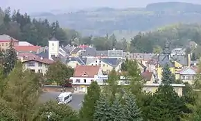 Через місто протікає ріка Їзерка; на заході височіє гора Козінец (Kozinetz) висотою 561 м, на південному заході — Грубий копець (507 м), а на сході — Бранський копець (507 м).