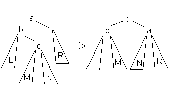 Дане обертання використовується тоді, коли (висота b-піддерева - висота L) = 2 і висота С <= висота R.
