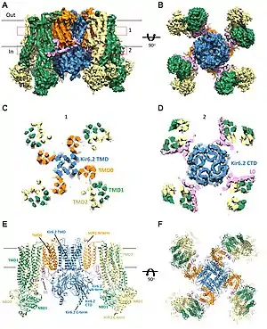 У 2017 році було опубліковано дослідження структури комплексу АТФ-залежного калієвого каналу щура за допомогою кріоелектронної мікроскопії. Робочий канал являє собою октамер, в центрі якого знаходиться тетрамер з субодиниць Kir6, кожна з яких на периферії поєднана з білком SUR. Ширина комплексу Kir6.2-SUR1 складає близько 200 ангстрем, а висота — близько 125 ангстрем. За формою канал нагадує пропелер, у якому пора Kir6.2 і TMD0 допоміжної субодиниці утворюють щільний центр, а інші частини SUR1 — лопаті пропелера. Ключовим місцем контакту між Kir6 та SUR у комплексі є домени TMD0 та L0 (прилегла до TMD0 цитоплазматична петля).[1]