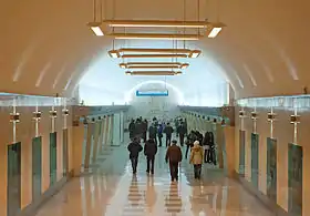 Архітектурно-художнє рішення станції створює сучасний автентичний інтер'єр без використання традиційних архітектурних елементів. Стіни і колони оздоблені мармуром бежевого і коричневого кольорів. Підлога викладена гранітом сіро-бежевого і коричневого кольорів. Карниз виконано з нержавіючої сталі.