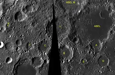 - Сателітний кратер Абель L відноситься до нектарського періоду.