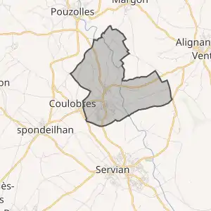 Муніципалітет розташований на відстані[2] близько 610 км на південь від Парижа, 55 км на захід від Монпельє.
