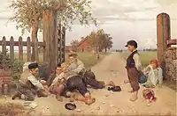 Lekande barn i trädgårdsland 1866