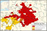 Август I прагнув до територіальних придбань, орієнтуючись на союз з Габсбургами та намагаючись досягти релігійного миру, сприяв укладанню його в Аусбурзі в 1555 році. Курфюрста Саксонії імператор призначив очільником Верхньосаксонського округу імперії. Того ж року Августом I було секуляризовано Майсенське єпископство. 1558 року під час рейхстагу3 у Франкфурті підписав компромісний варіант між кальвінізмом та лютеранством. 1559 року приєднав до своїх володінь Штольпен і Бішофсверда. Того ж року заснував в Дрездені Апеляційний суд.