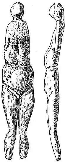 З бивнів мамута жіночі статуетки (палеолітичні венери) та головні діадеми. З бивня мамута, кістки та піщаника фігурки мамута, коня.