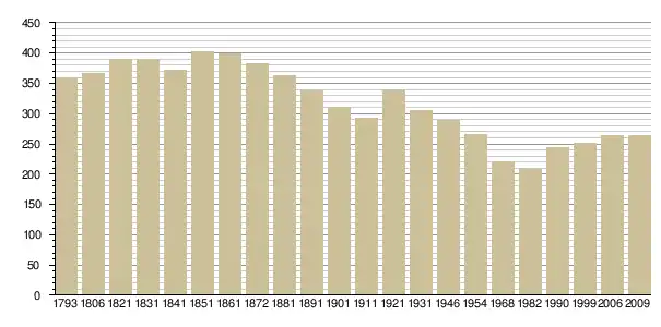 Динаміка населення (base Cassini de l'EHESS pour les nombres retenus jusque 1962[3], base Insee à partir de 1968 (population sans doubles comptes puis population municipale à partir de 2006)[4] · [5] ):
