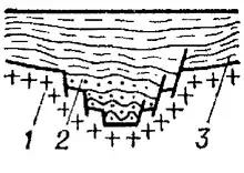 - закриті (одним кінцем затухають на платформі, іншим виходять за її межі) — Дніпровсько-Донецька западина (ДДЗ)