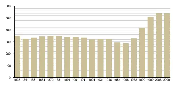 Динаміка населення (base Cassini de l'EHESS pour les nombres retenus jusque 1962[3], base Insee à partir de 1968 (population sans doubles comptes puis population municipale à partir de 2006)[4] · [5] ):