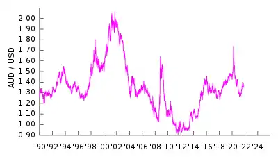 - Графік валютного курсу Австралійського долара відносно Долара США з 1960 року fxtop.com