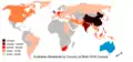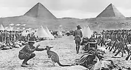 Австралія була заселена корінними австралійцями близько 60 тис. років тому[14]. Австралійські аборигени розмовляли мовами, що становлять 250 окремих груп[15][16]. Образотворче мистецтво аборигенів, з яким можна ознайомитись на скелях у різних куточках країни, є найстарішим у світі[17]. Уперше європейці з'явились на континенті 1606 року, це була голландська експедиція Віллема Янсзона[7]. Східна частина Австралії була досліджена британською експедицією Джеймса Кука наприкінці XVIII століття[18]. 26 січня 1788 року — національний день Австралії, того дня була заснована перша колонія — Новий Південний Уельс. 1829 року з утворенням Західної Австралії вся територія Австралії була включена до складу британської корони[18]. До колонії на постійне проживання засилали засуджених, так британці поступово заселили південно-східне узбережжя континенту. На початку 1850-х років у країні розпочалась «золота лихоманка», що збільшила чисельність населення та значно пожвавила економіку[19]. Населення континенту постійно зростало, до 1850-х років більша частина територій була досліджена. Загалом було створено 6 самоврядних колоній. 1 січня 1901 року ці колонії об'єдналися, утворивши Австралійський Союз. ![]()