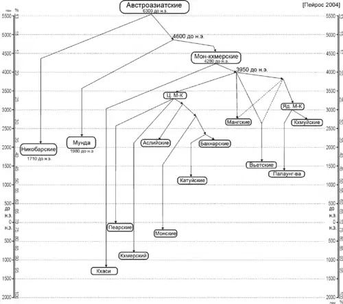 Класифікація австроазійських мов російсько-австралійського лінгвіста Іллі Пейроса (Ilia Peiros, 2004) базується на лексико-статистичних даних[6].