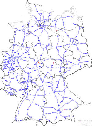 Всі інформаційно-вказівні знаки на автобанах Німеччини мають блакитний колір. Цим вони відрізняються від дорожних вказівних знаків мережі федеральних («бундес-штрассе»), земельних («ланд-штрассе»), районних («крайс-штрасе») та інших місцевих доріг, які мають жовтий колір.