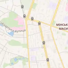 Мт 181, 219, 227, 472, 525, 537, 586 (по вул. Вишгородській); 581 (по вул. Автозаводській) |