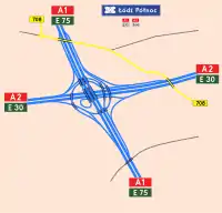 Автомагістраль A2 перетинається чи з'єднується з такими автомагістралями та швидкісними дорогами (з заходу на схід):