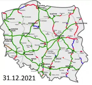 Автомагістралі та швидкісні дороги (пол. Autostrady i drogi ekspresowe) Польщі є частиною національної дорожньої мережі. Статус автомагістралей і швидкісних доріг призначений для найважливіших доріг, які обслуговують інтенсивні міжрегіональні та міжнародні зв'язки. Станом на 31 липня 2021 року в Польщі в експлуатції було 1732 кілометрів автомагістралей та 2680 кілометрів швидкісних доріг - разом 4395 кілометрів. Загальна довжина, згідно з Програмою будови автомагістралей та швидкісних доріг, повинна становити близько 8177 кілометрів.[1][2]. Важливим чинником прискорення будови в останні роки є дотації Європейського Союзу за механізмами структурних фондів та фонду гуртування (в б'юджеті 2007-2013 років ЄС призначив на дотації на будову доріг у Польщі близько 10 млрд. євро[3]).