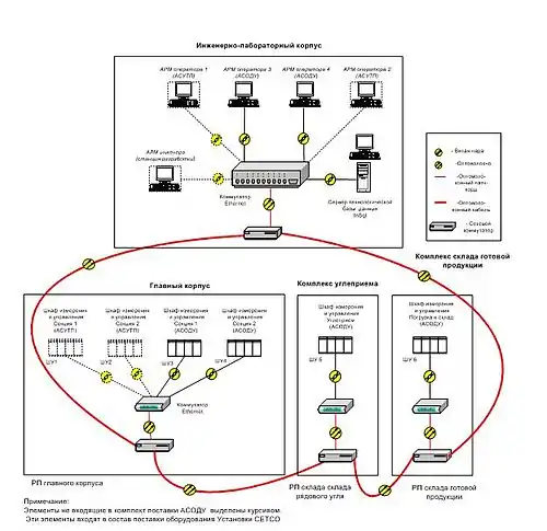 Інтеграція обладнання АСОДУ і устаткування АСУТП забезпечується за рахунок підключення керуючих контролерів кожного з технологічних переділів до єдиної інформаційної магістралі, яка реалізується на базі волоконно-оптичної мережі Ethernet.