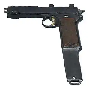 Німці багато експериментували переробляючи різні типи пістолетів на автоматичні (нім. Reihenfeuerpistolen, буквально «пістолет стрільби чергами»). Пістолет Luger P08 з довгим стволом було створено для артилерійської обслуги. Довгий ствол було зроблено через те, що артилерійській обслузі була потрібна зброя легша за гвинтівку, але як б мала точність на рівні гвинтівки. Він був створений під новий набій 9 мм Parabellum, який було створено для зменшення віддачі без шкоди пробивній дії і вбивчій силі. Хоча куля і не мала бронебійних властивостей.