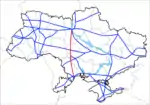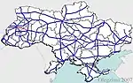 Загальна протяжність міжнародних автомобільних доріг на території України — 9311,2 км (8652,7 км).[8]