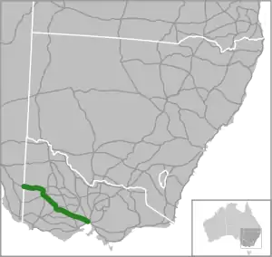 Західна автострада бере свій початок від кордону штатів Вікторія та Південна Австралія, на схід від Бордертауна. Поблизу містечка Баррумбіт автошлях А8 завершується, а далі починається автошлях