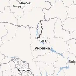Починається в Києві, проходить через Чернігів і закінчується на контрольно-пропускному пункті «Нові Яриловичі», який веде до Гомеля в Білорусі.